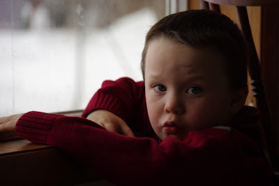 I wouldn't let Little Man go along for the first part of the trip because the windchill had the potential to be brutal. He was not impressed.